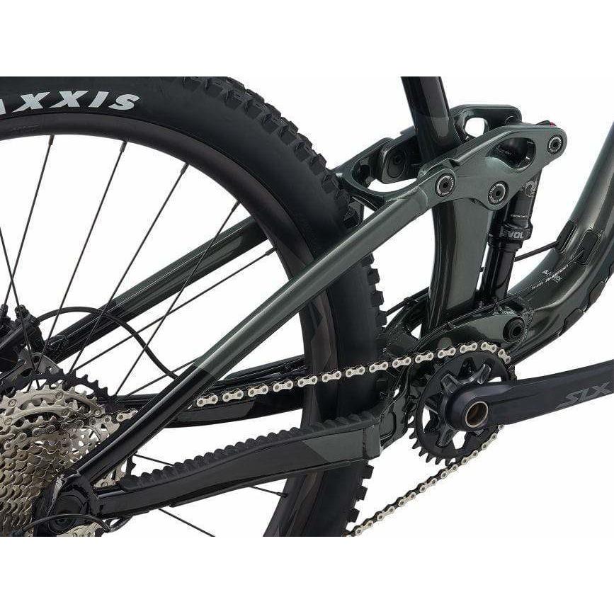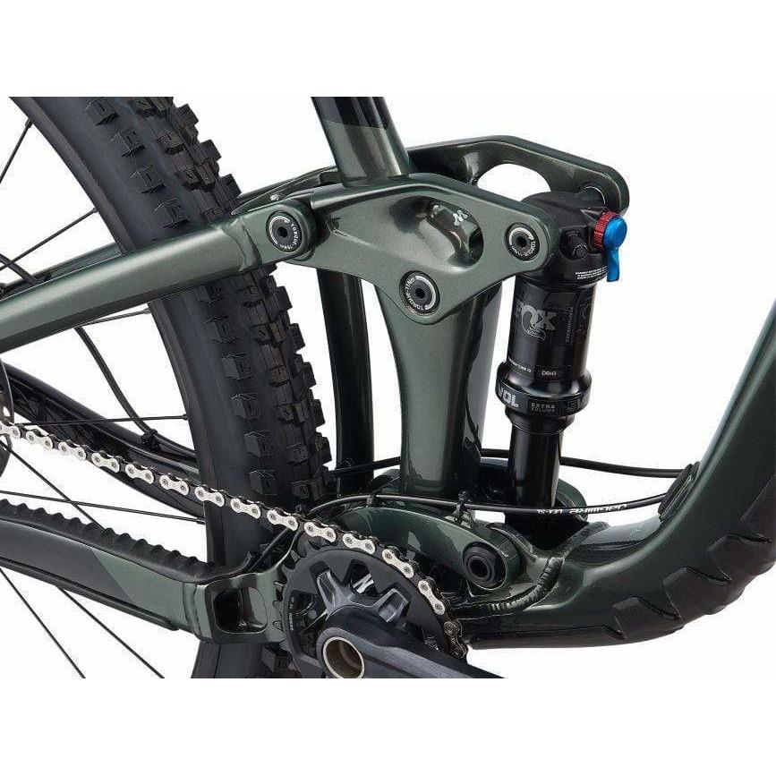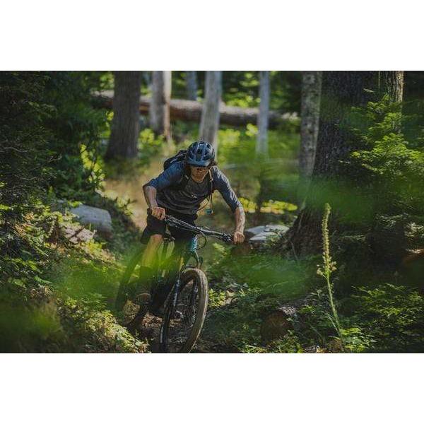 Lightweight ALUXX-SL frameset features adjustable geometry that offers 66.2 or 65.5-degree headtube and 77.9 or 77.2-degree seattube angles, resulting in 30mm or 40mm bottom bracket drop options for aggressive trail configurations.