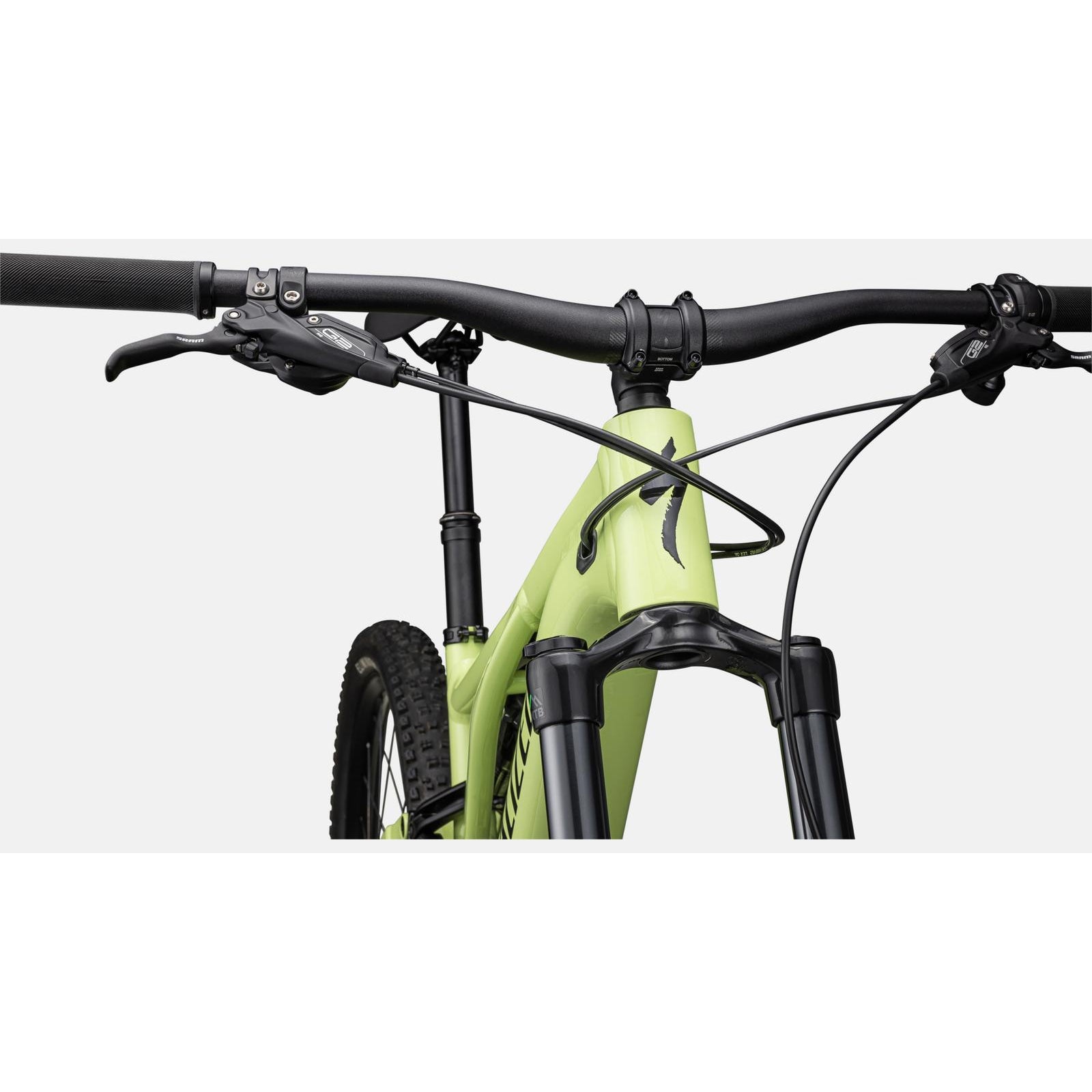 - A dedicated mixed-wheel size design with a 27.5” wheel in the back and 29” up front delivers a nimble ride that carves circles around other full-power e-MTBs. A generous cockpit centers you on the bike, optimizing traction and corner control. The low bottom bracket, slack headtube angle and reduced fork offset keep things stable in the rough.